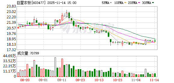 近年来,生猪养殖行业在竞争中加速转型升级,提高生产效率、降低养殖成本已成为生猪养殖企业的长期核心目标。巨星农牧通过精细化管理持续增效降本,2025年10月公司生猪养殖业务的PSY为30头以上、商品肥猪完全成本约为6.1元/斤。巨星农牧表示,公司生产效率、经营管理还有进一步提升的空间。公司将在“科技研发、管理迭代”等方面继续创新突破,以技术成果应用推广提高生产水平,将成功管理经验赋能提升经营业绩,推动实现公司高质量发展。