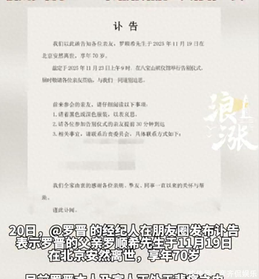11月19日,娱乐圈传来了一则令人痛心的消息——罗晋的父亲罗顺希先生在北京离世,享年70岁。经纪人发布讣告时,语气沉痛,透露出罗晋及家人深陷悲痛中。面对如此巨大的失落,我们作为观众或许只能表达一声同情最靠谱股票配资平台,但在这个信息过载的时代,公众人物的私人生活似乎总是被不断放大,不仅有着亲情的压力,还不得不面对媒体和舆论的狂轰滥炸。