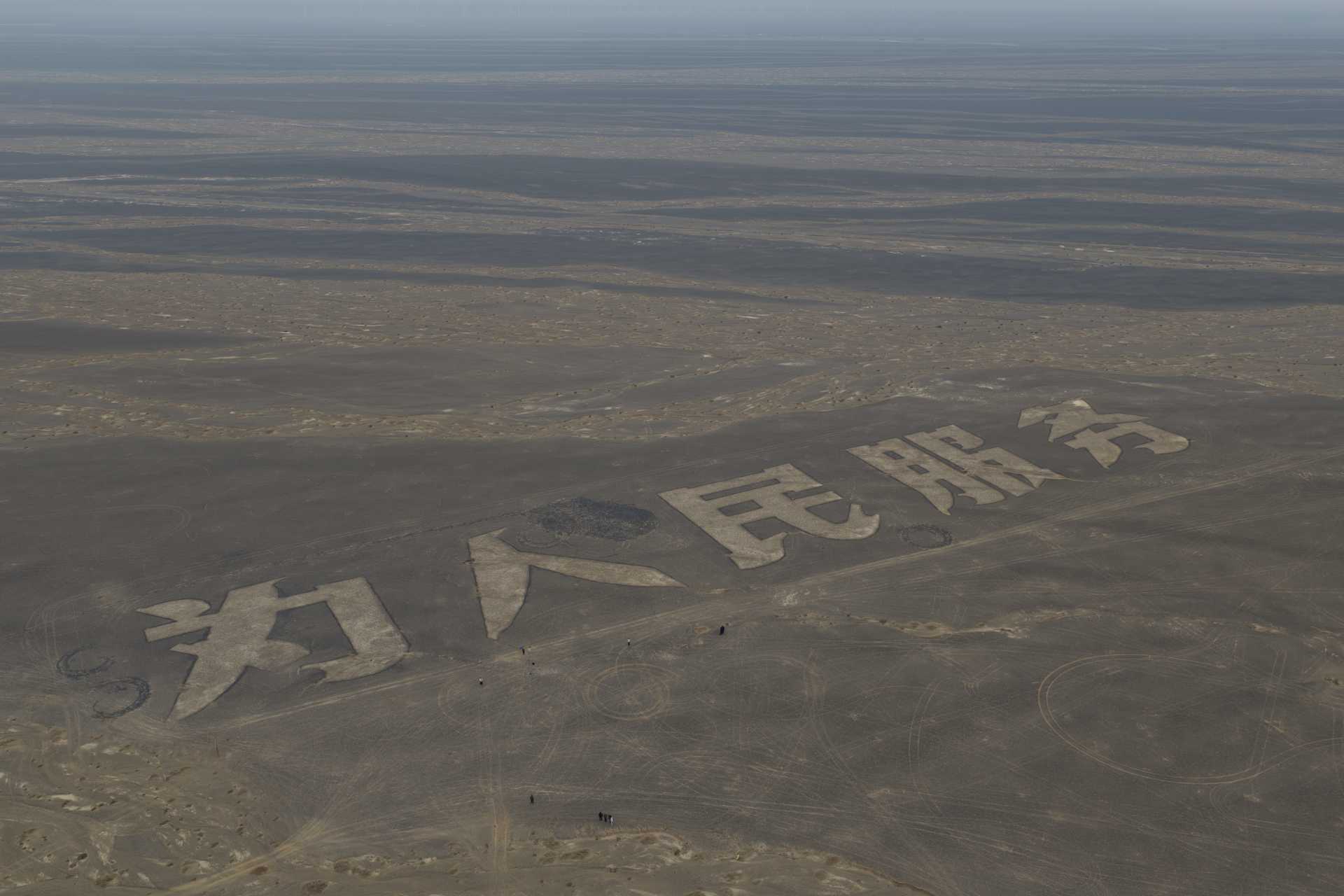 11月6日,新疆哈密市伊州区沁城乡戈壁滩上的“为人民服务”巨幅飞行地标(无人机照片)。新华社记者 张啸诚 摄这5处巨幅飞行地标是中国人民解放军第八航空学校官兵于20世纪60年代在戈壁滩上刻画而成,用于飞行员训练时导航参照,对保障飞行安全起到了重要作用。今年9月,“为人民服务”飞行地标被人为破坏引发社会广泛关注。